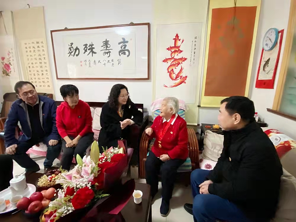 隨后黃蓓一行來到元首集團(tuán)離休老干部、老黨員黃顯和家中,送上鮮花和慰問金,致以佳節(jié)祝福,與黃顯和老人座談交流。93歲的黃顯和老人年輕時(shí)在湖南讀書期間就接受革命洗禮,秘密加入學(xué)校進(jìn)步社團(tuán),在“白色恐怖”下開展愛國(guó)運(yùn)動(dòng),轉(zhuǎn)業(yè)后在濟(jì)南針織廠辛勤耕耘近十八載,1982年4月離休,是名副其實(shí)的巾幗模范代表。黃蓓代表集團(tuán)黨委感謝她為黨和企業(yè)做出的突出貢獻(xiàn),對(duì)其在革命年代的英勇事跡表示崇高敬意,表示產(chǎn)發(fā)集團(tuán)要傳承好老一輩不懼艱辛、敢于奮斗、無(wú)私奉獻(xiàn)的精神,凝心聚力、接續(xù)奮斗。